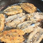 Mano a mano mettetele su un piatto, e lasciatele in frigo per almeno un’ora. In una capiente padella, portate a temperatura l’olio di semi, iniziate a friggere le alici.