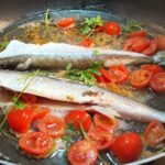Regolate di sale, coprite la padella, e lasciate cuocere per dieci minuti, irrorando di tanto in tanto la superfice del pesce. Servite l’aluzzo all’acqua pazza, ben caldo, magari accompagnato da crostini di pane.