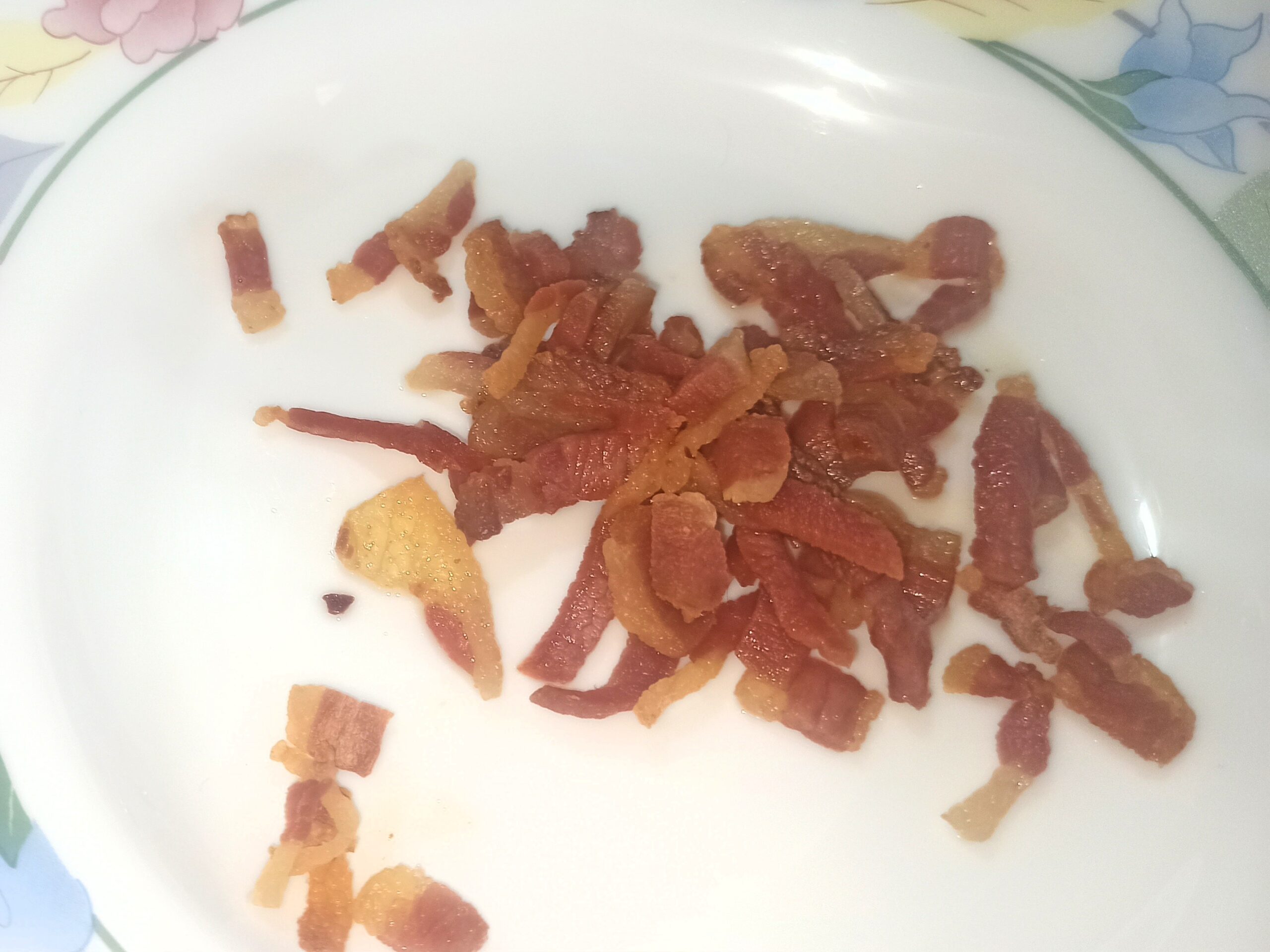 Impiattate, completate il piatto con altro pecorino grattugiato ed il guanciale croccante.