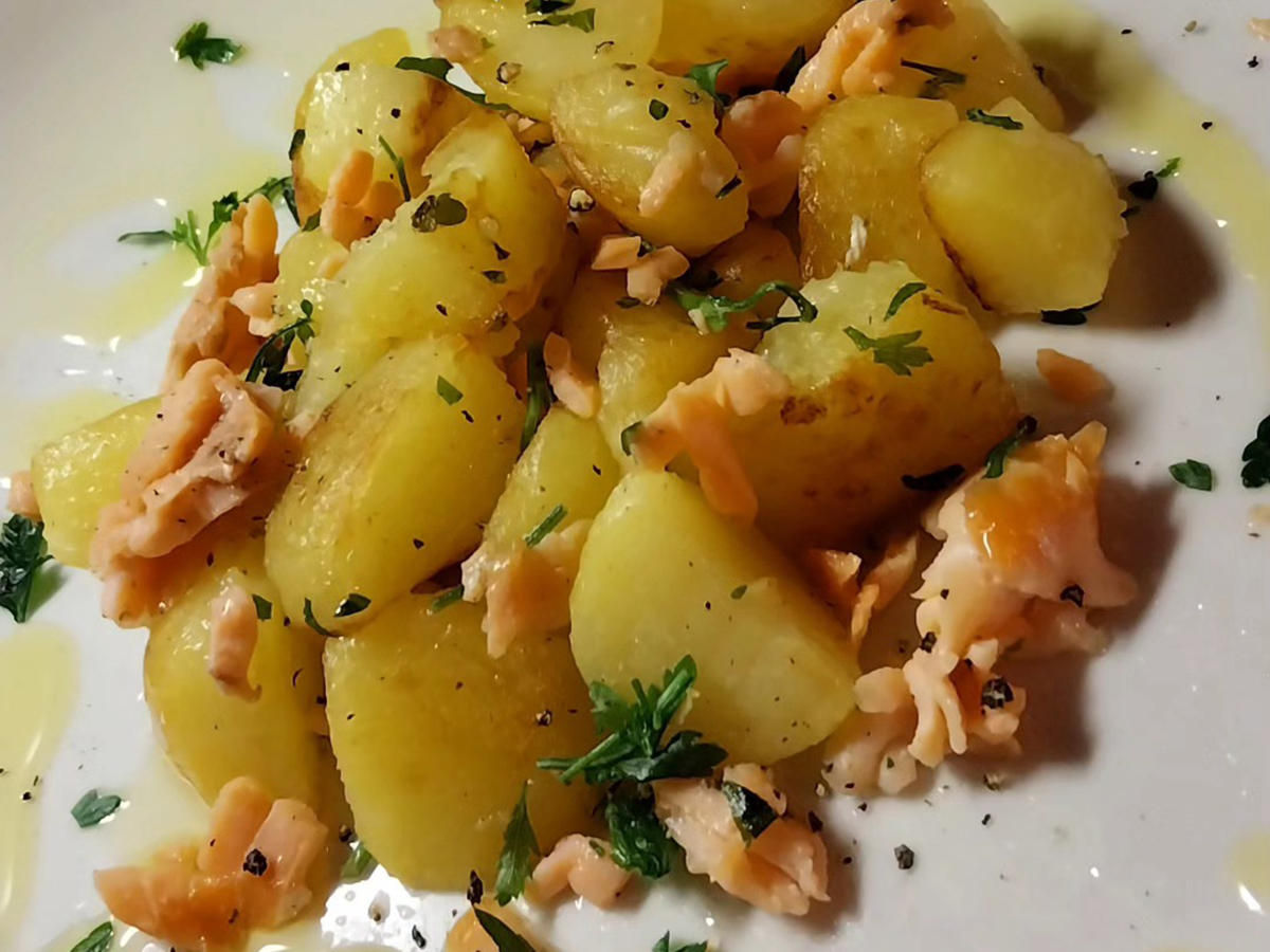 Le patate salmonate sono un piatto semplice e raffinato, dove le patate vengono arricchite con filetti di salmone affumicato. Il risultato è un contorno o un piatto unico che unisce la morbidezza delle patate al sapore intenso del salmone. Le patate possono essere lessate, condite con olio, sale e pepe, e poi arricchite con salmone affumicato sminuzzato e qualche erba aromatica come l’aneto o l’erba cipollina. Questo piatto è ideale per un pranzo leggero o un antipasto elegante. Ecco come preparare le patate salmonate: