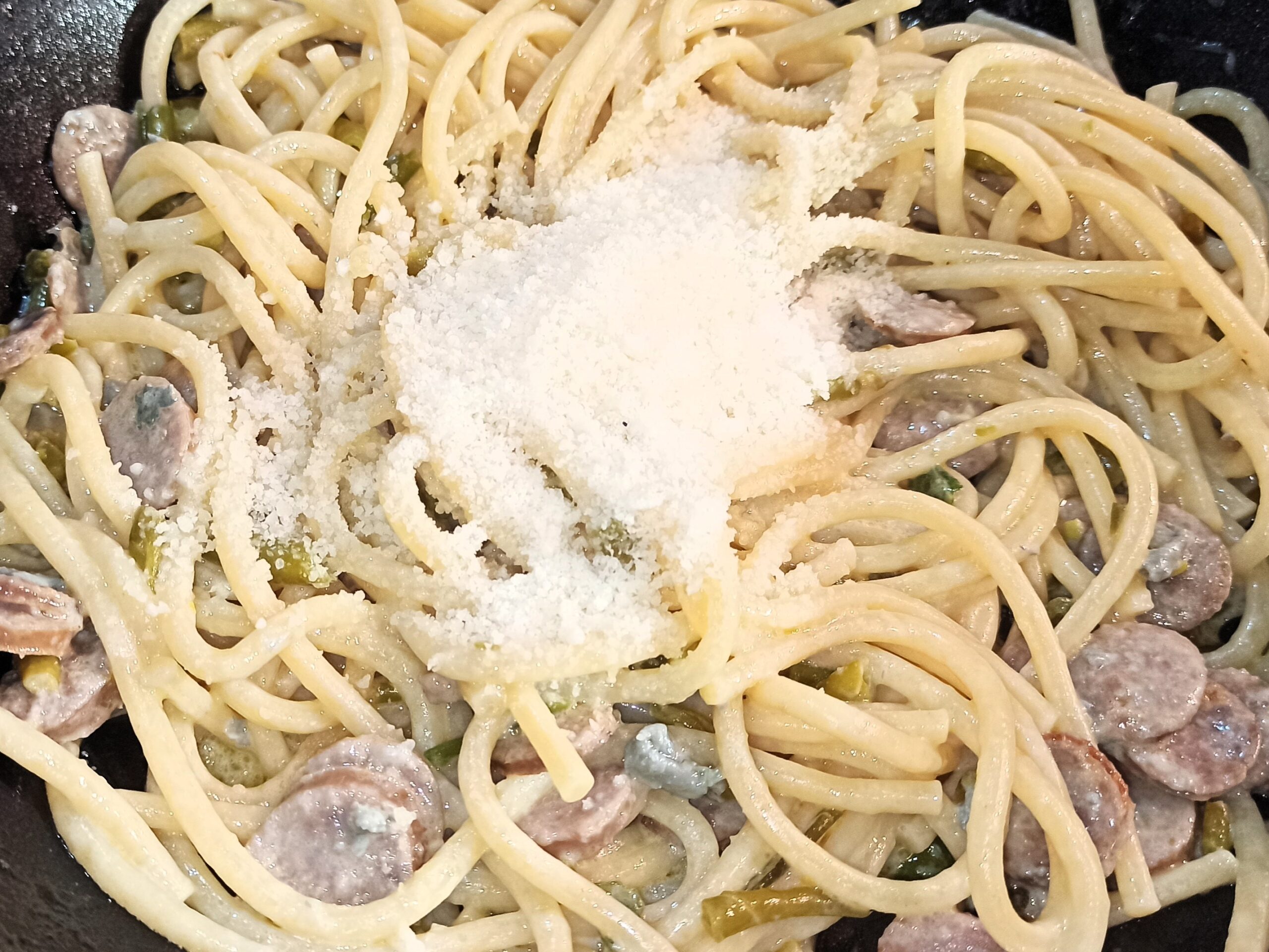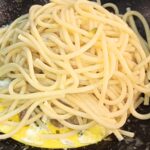 Cuocete al dente i bigoli, e colateli nella padella, mescolate a fiamma vivace, se occorre aggiungete un poco d’acqua di cottura.