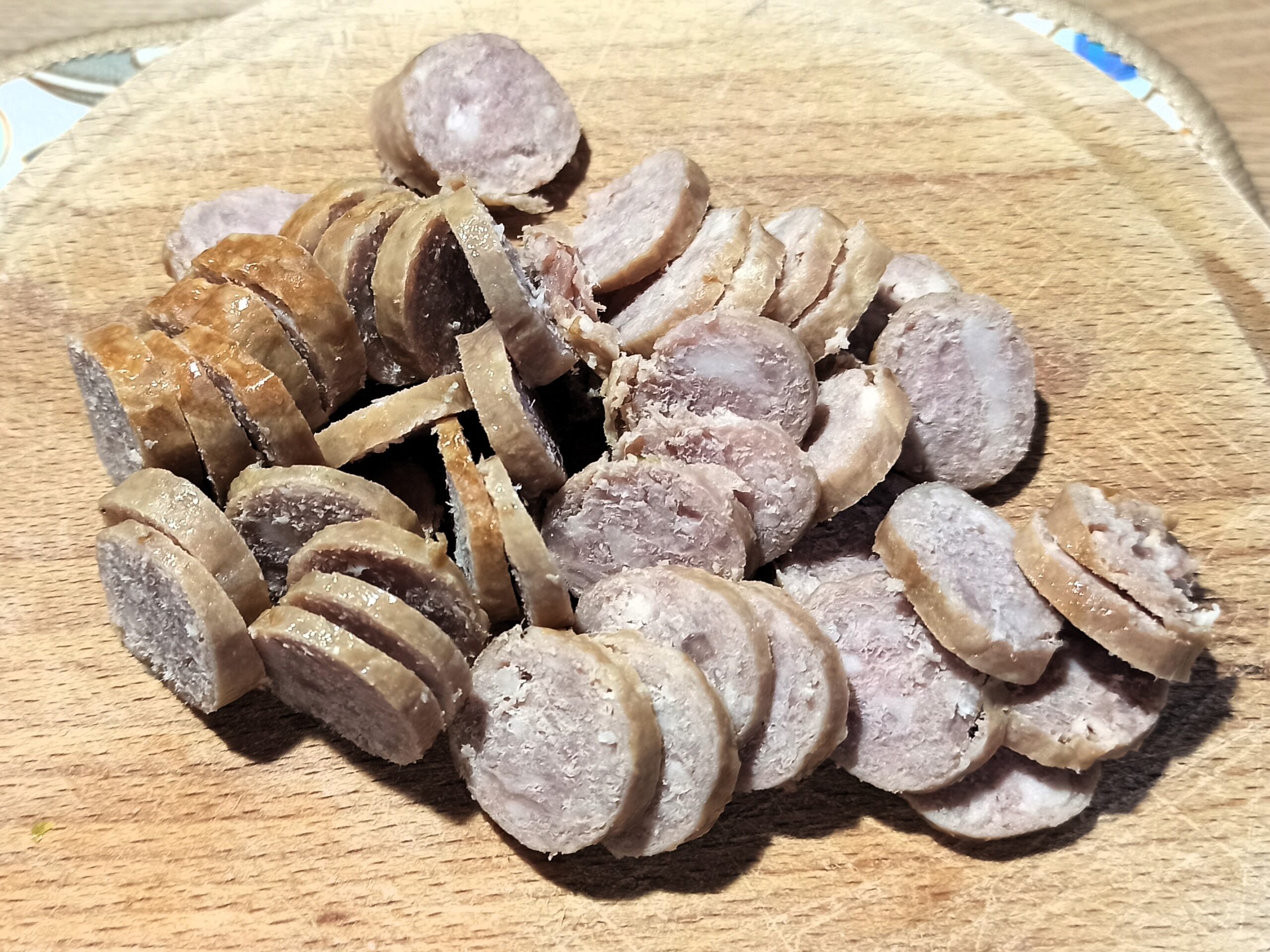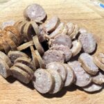 Per preparare i bigoli di nonna Nina, iniziate a cuocere la salsiccetta intera. Mettete un filo d’olio in una padellina, e iniziate a cuocerla a fiamma bassa, con la padellina coperta. Appena sarà cotta, mettetela su un tagliere, fatela raffreddare e tagliatela a rondelle, potete anche utilizzare una salsiccetta avanzata.