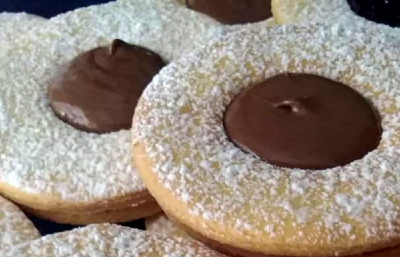 Su ciascun dischetto mettiamo una nocciolina di confettura a scelta. Se usiamo della crema spalmabile alle nocciole, dobbiamo coprirla con un piccolo dischetto di frolla, per evitare che si secchi in forno. Spolveriamo con abbondante zucchero a velo (dobbiamo formare uno strato di 1,5 mm di spessore) e cuociamo in forno caldo e ventilato a 160-170° per 15-16 minuti. LEGGI ANCHE—> La “Frolla Milano” di Iginio Massari, Lo chef svela il segreto del cucchiaino per la frolla perfetta per crostate e biscotti