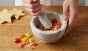 - Per il “vetro”: Caramelle dure colorate (gusti frutta come arancia, fragola, limone). Attenzione: non usate gelatine, mou o toffee, non funzionano!