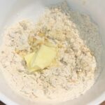Mescolate grossolanamente tutti gli ingredienti, infine aggiungete il burro.