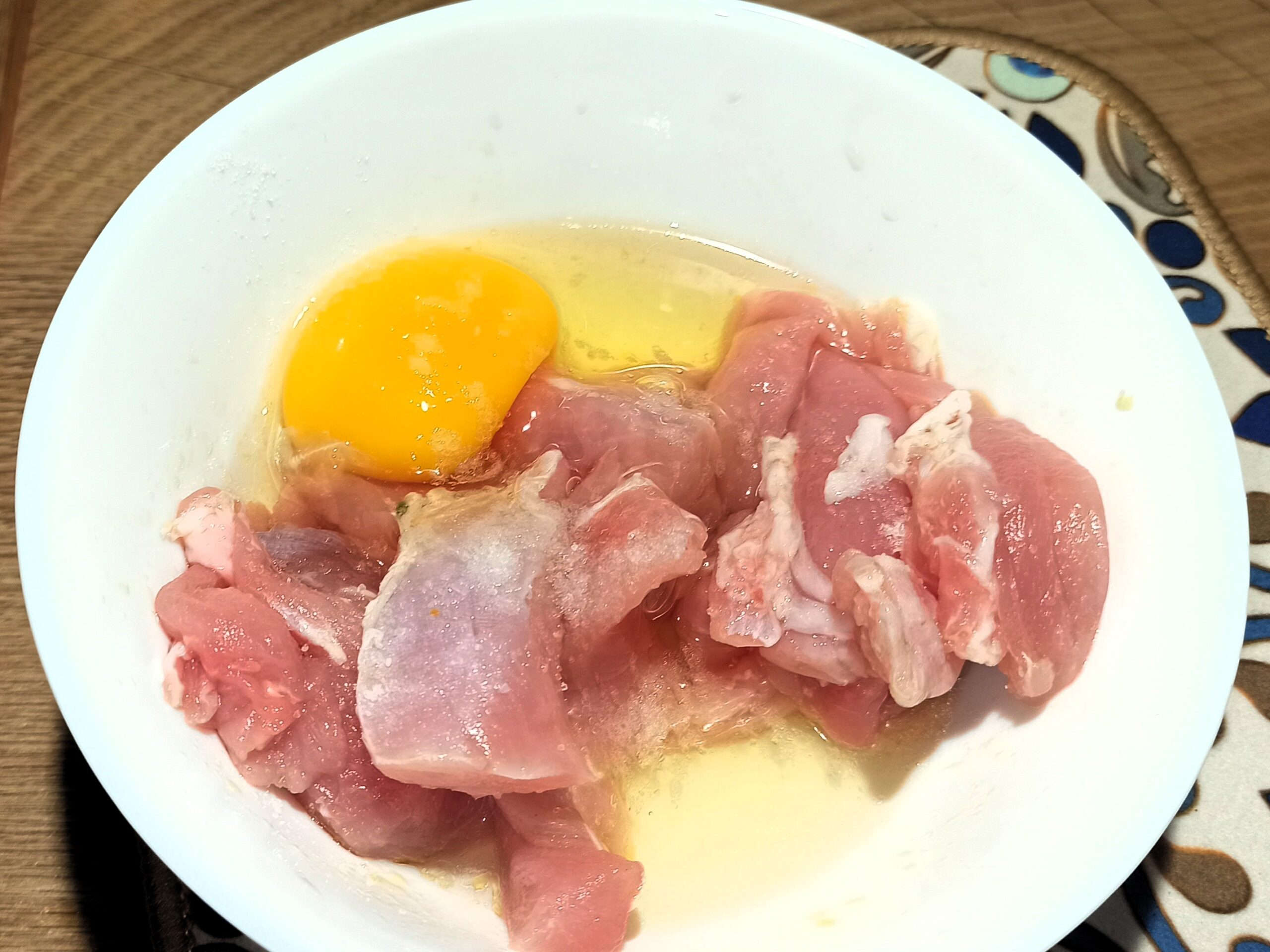 Mescolate il tutto, coprite con una pellicola e mettete in frigo a marinare per almeno quattro ore. Trascorso questo tempo, sgocciolate i bocconcini di coniglio, metteteli in una ciotola, con le uova, e mescolate il tutto, regolando di sale e pepe.