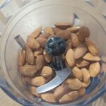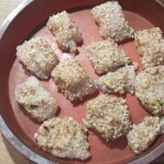 e poi nelle mandorle tritate. Disponetele in una teglia, io ho utilizzato una teglia di silicone, per friggitrice ad aria.