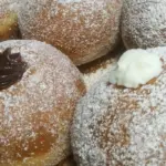 Adesso stendiamo l’impasto ottenendo un centimetro di spessore. Lasciamo riposare altri 5 minuti e poi con un coppapasta di diametro di 5 cm formate la prima bomba. Facciamo quindi tanti dischi e poi disponiamoli su una teglia coperta da carta forno. Coprite con la pellicola e lasciate lievitare finché avranno raddoppiato il volume iniziale. Prendiamo una padella profonda o un pentolino, riempiamolo d’olio ( devono essere immersi) a 175 gradi e cominciamo a friggere i nostri bomboloni o bombe. Una volta cotti potete farcirli come volete, spolverano con dello zucchero a velo.