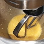 Per preparare la broche rustica, montate il gancio a foglia alla planetaria e mescolate le uova con lo zucchero, appena avrete ottenuto un composto spumoso, unite il burro fuso. Sciogliate il lievito in un poco di latte, e versatelo nella planetaria, unite anche il latte restante, sempre mescolando.