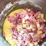 Poi unite la farina, ed infine il sale. Coprite l’impasto e lasciatelo riposare per due ore. Nel frattempo che l’impasto riposa, tagliate a dadini il formaggio e prosciutto cotto. Trascorso il tempo d riposo, uniteli all’impasto, amalgamate bene. Versate l’impasto in uno stampo da ventiquattro centimetri, livellate e lasciate riposare per un’altra ora. Infornate in forno preriscaldato 180° per circa trenta minuti. Sfornate lasciate raffreddare e gustate.