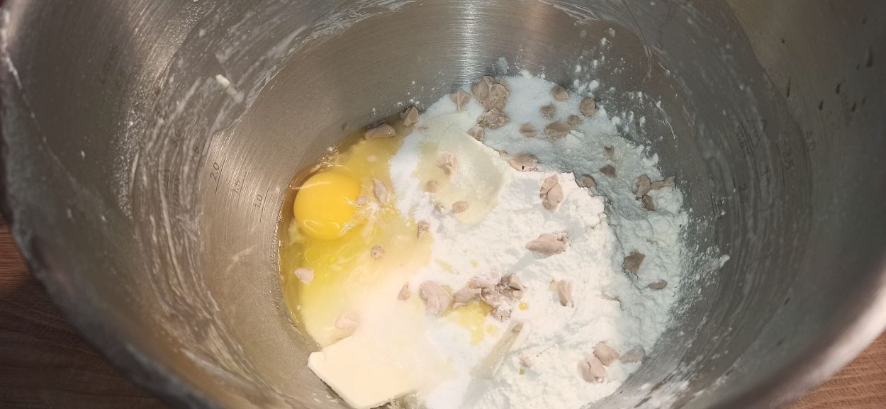 Per preparare le briosce ripiene, iniziate a mettere in una planetaria, tutti gli ingredienti tranne il latte ed il sale.
