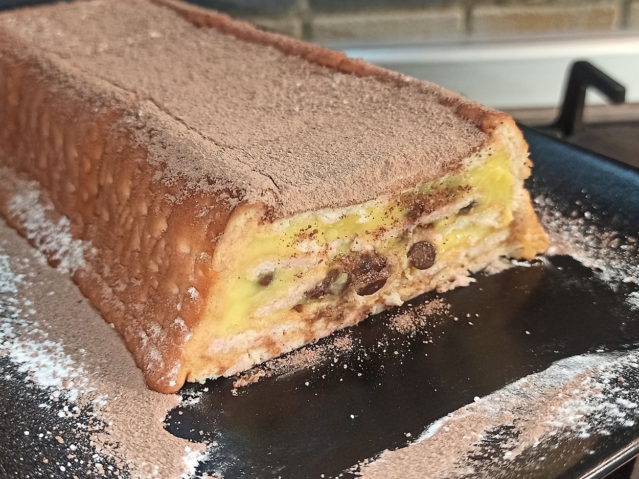 La ricetta originale non prevede l’aggiunta in superfice dello zucchero a velo.