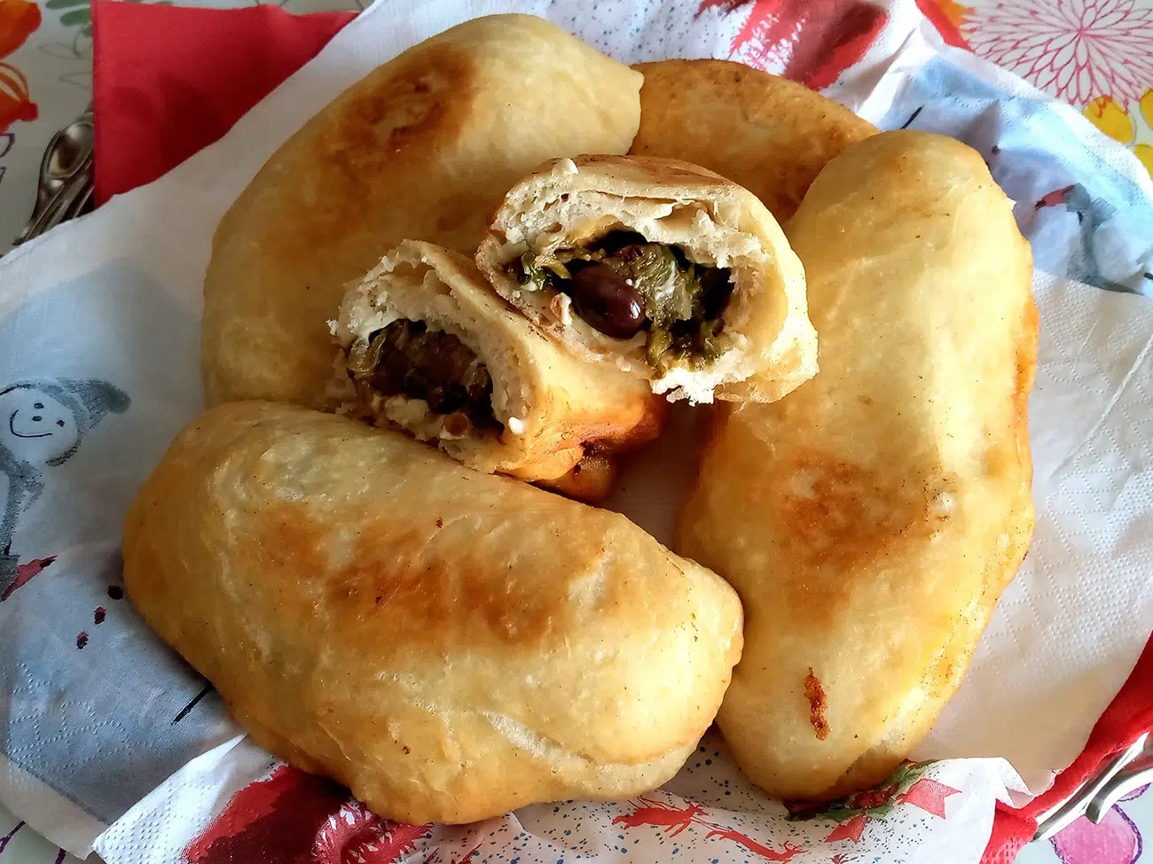 Dividiamo quindi il nostro panetto liscio e omogeneo in tante pallette di 100 grammi. Una volta divise le pallette stendiamole una ad una con un matterello. Non è una pizza napoletana: ricordiamo che abbiamo voglia di piazza, ma non abbiamo tempo e voglia di cose elaborate. Adesso farciamo ogni disco di pasta come vogliamo. Noi abbiamo farcito con scarole alla monachina. Le avevamo e la abbiamo usate.