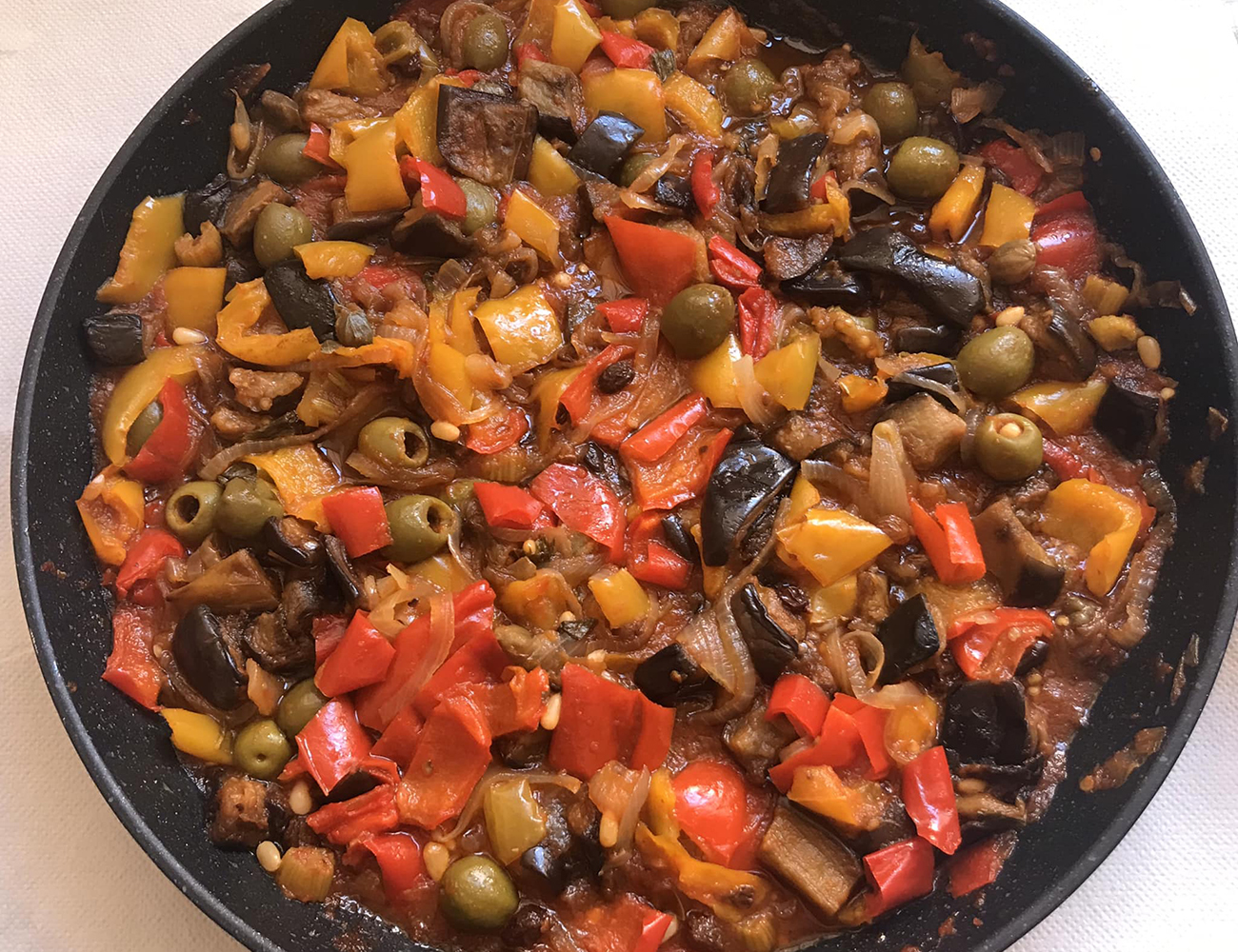 Aggiunta delle melanzane: Aggiungi le melanzane fritte alla padella con le altre verdure e mescola delicatamente. Cuoci per qualche minuto a fuoco basso, in modo che le melanzane assorbano i sapori senza perdere la loro consistenza.