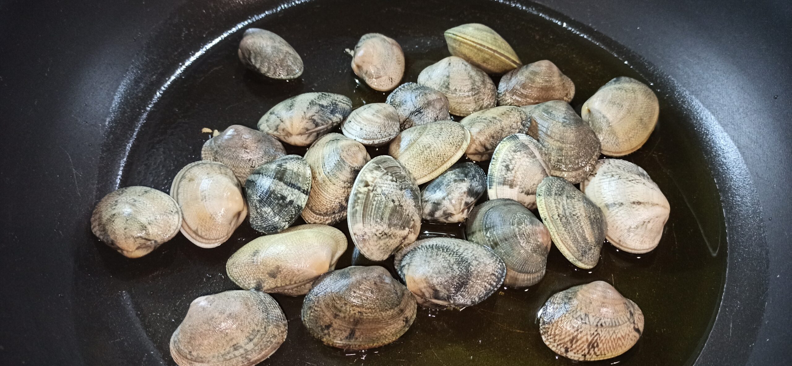 Fate aprire e sgusciate le vongole, conservate il liquido rilasciato.