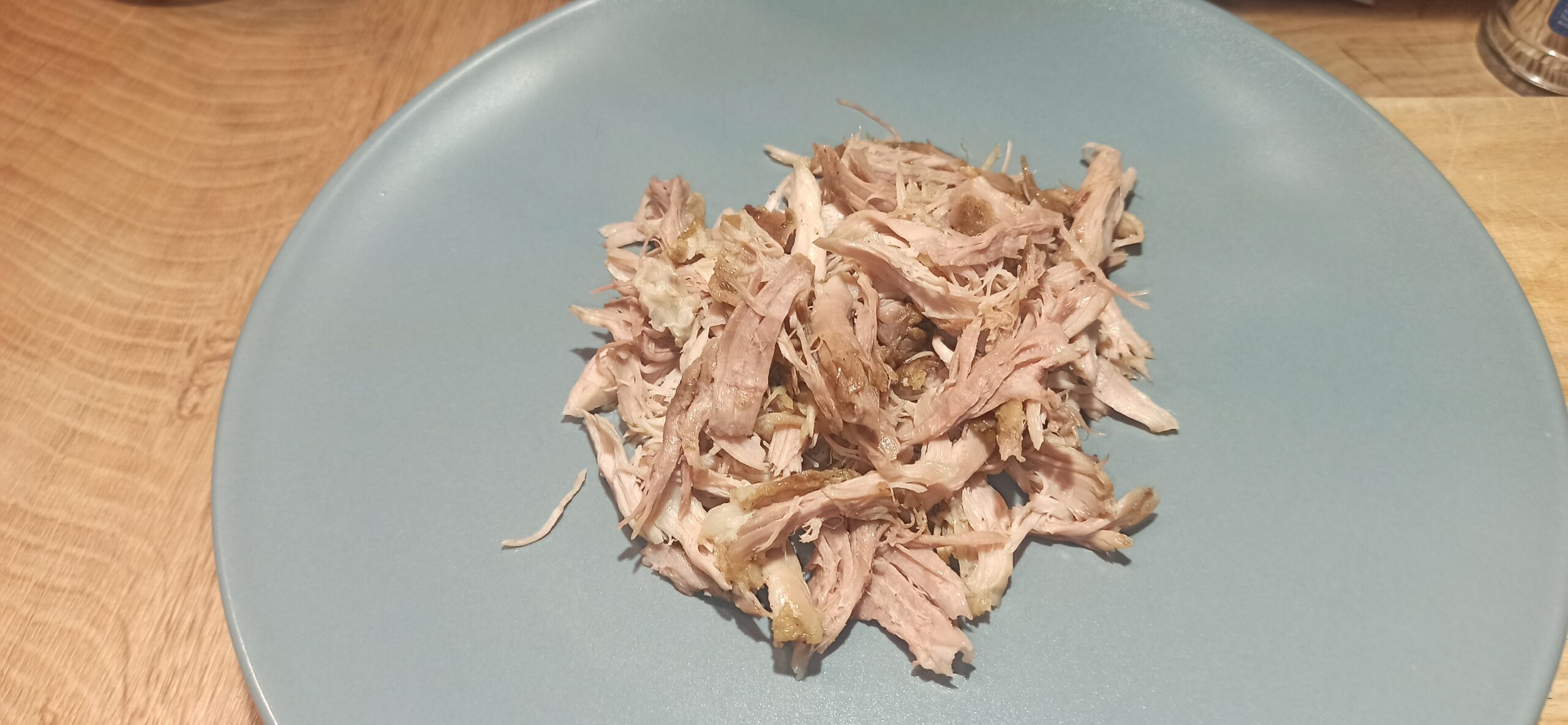 e con l’aiuto di due forchette, iniziate a sfilacciarla.
