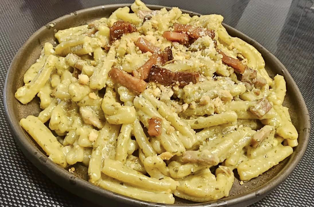Le casarecce alla Lubrense, con speck, pesto di rucola e tarallo sbriciolato sono un piatto tipico della costiera sorrentina che unisce sapori e consistenze diverse in un’armonia di gusto. Ecco come preparare questa ricetta: