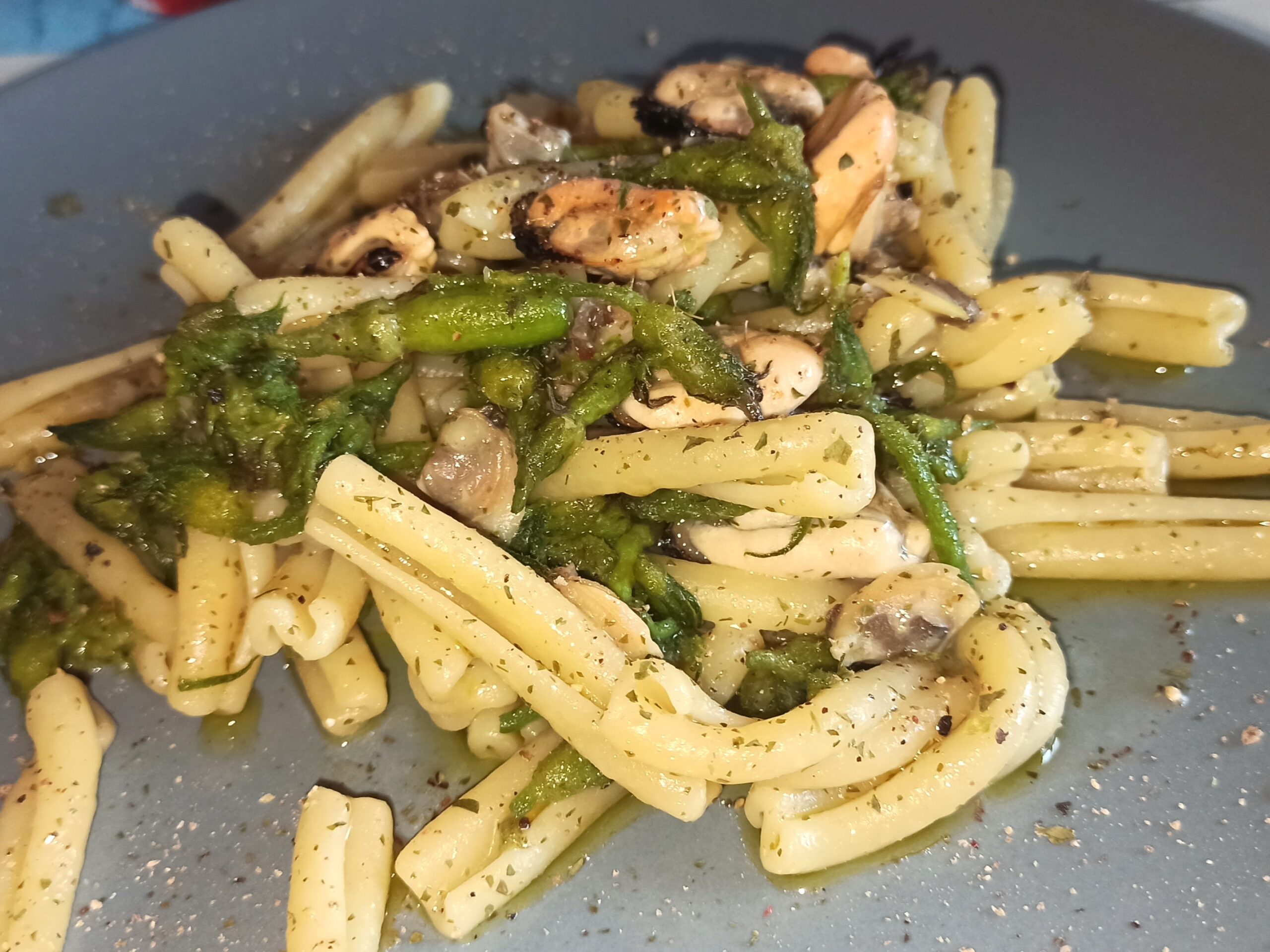 Casarecce con frutti di mare e fiorellini di zucchine