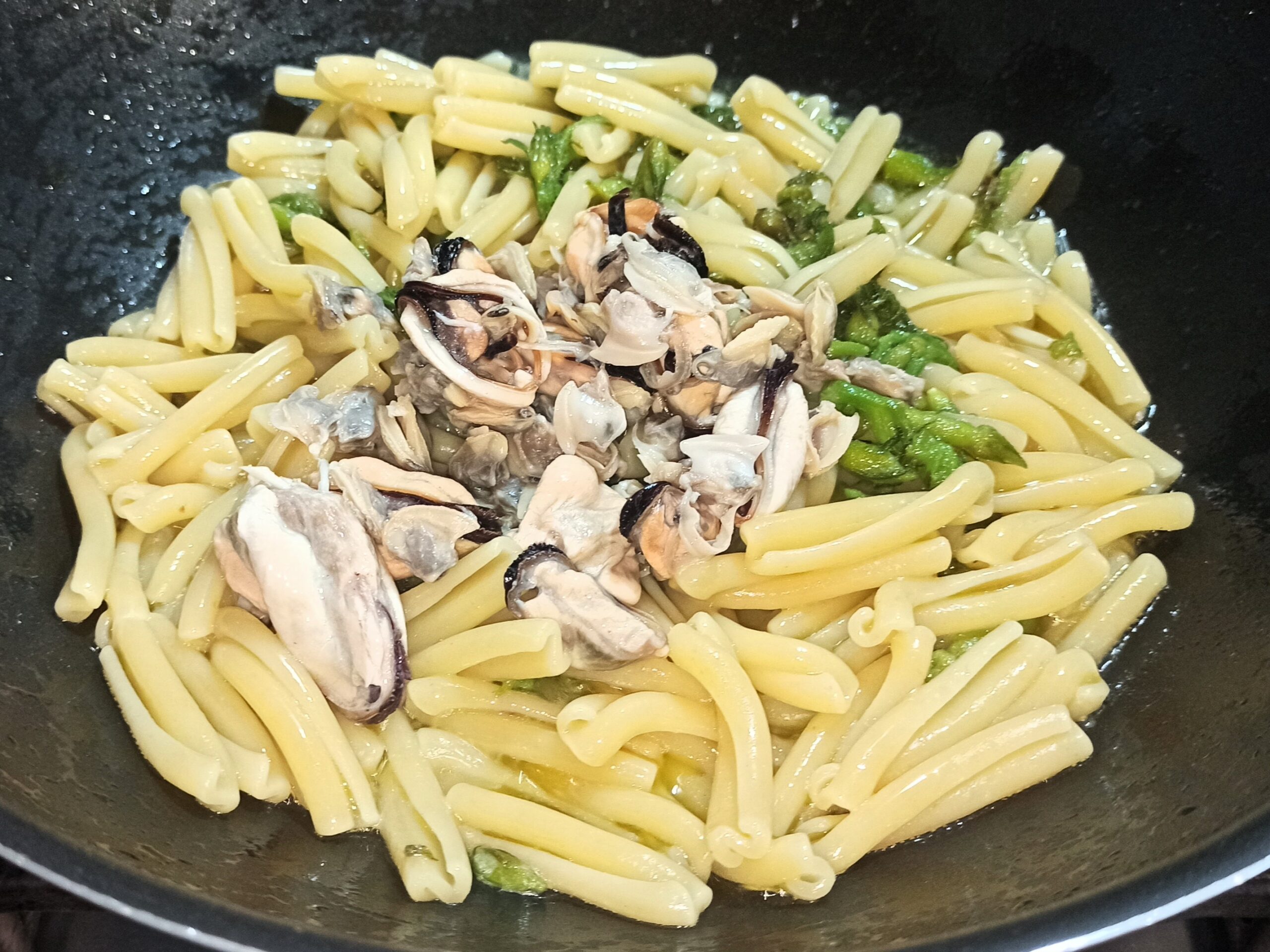 appena la cottura della pasta sarà terminata, spegnete la fiamma, ed aggiungete i frutti di mare.