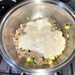Tagliate la zucchina a tocchetti piccoli, metteteli in un pentolino, insieme ad un giro d’olio evo e la carne tritata. Fate rosolare il tutto per cinque minuti, poi sfumate con il brandy, e continuate la cottura per altri cinque minuti. Appena l’alcol sarà evaporato, aggiungete la crema di latte aromatizzata al tartufo, sempre mescolando a fiamma bassa.