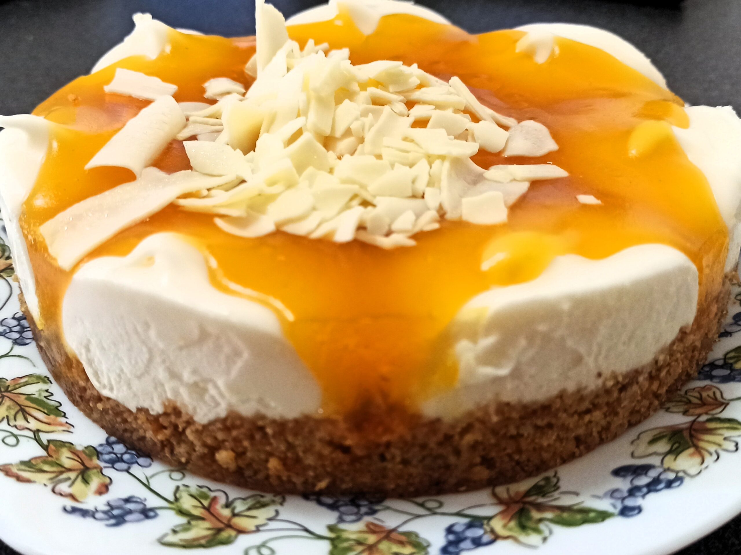 La cheesecake è un dolce moto versatile, sono infinite le varianti per preparare la cheesecake, che differiscono tra di loro sia nell’utilizzo degli ingredienti che nella preparazione. Un dolce che si può gustare in qualsiasi momento della giornata, con gli ingredienti di vostro gradimento e/o che avete in casa. In occasione diun pranzo in famiglia, ho preparato questo dolce guarnito con marmellata di albicocche e cioccolato bianco, una vera esplosione di gusto, proovate a prepararla anche voi.