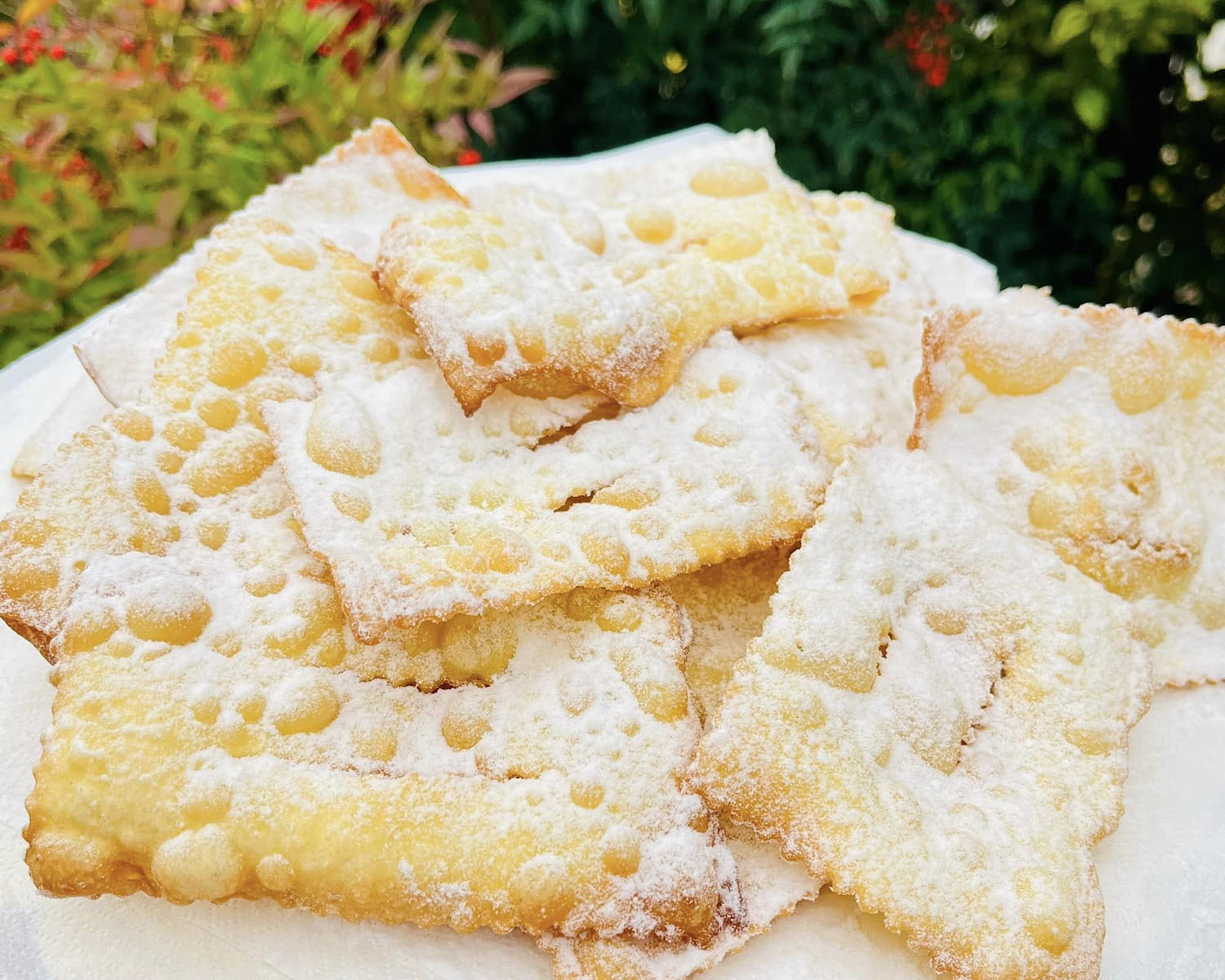 Appena estratte dall’olio spolverizzate con zucchero a velo. Per avere un buon fritto servirebbero una friggitrice con il controllo di temperatura oppure una pentola dove sia possibile padroneggiarla. Il valore ideale varia in base agli olii usati, ma generalmente si utilizza una temperatura compresa tra 175° C e 180° C, facendo molta attenzione a girare le sfrappole in fretta per non avere bruciature forti. Le vostre chiacchiere sono pronte.