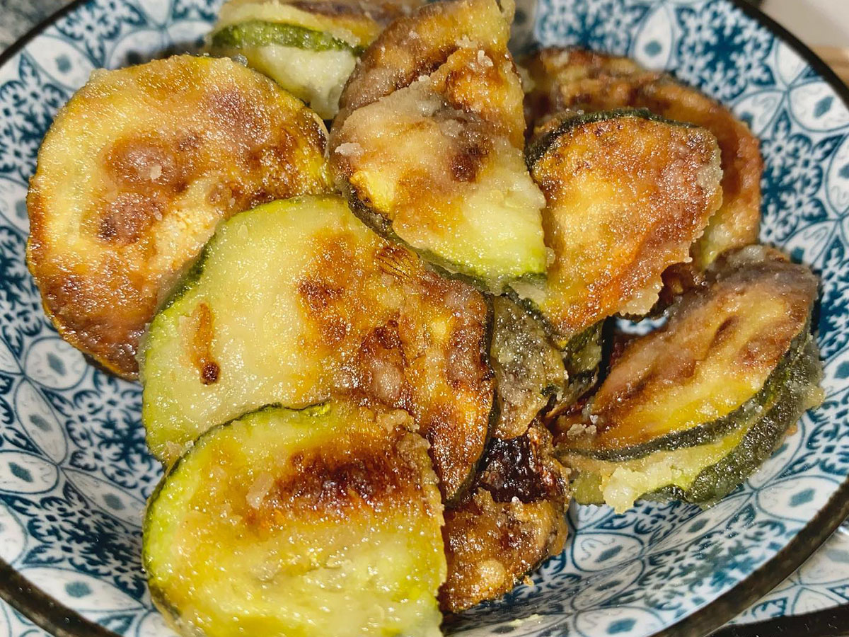 Iniziate eliminando le estremità delle zucchine e lavandole accuratamente. Per un risultato perfetto, tagliatele a fette molto sottili usando una mandolina. Questo passaggio è essenziale per ottenere la giusta croccantezza. Cospargete le fette di zucchine con olio extravergine d’oliva, poi passatele nella farina, assicurandovi che siano completamente rivestite. Battete delicatamente le fette per eliminare l’eccesso di farina.