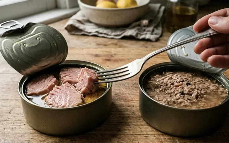 Un tonno di qualità non deve “sfaldarsi” come una crema appena lo toccate. Premete leggermente con una forchetta: se il tonno oppone resistenza e resta in pezzi interi (tranci), significa che è stato inscatolato con cura. Se invece diventa subito una poltiglia, è probabile che siano stati usati scarti di produzione tritati.