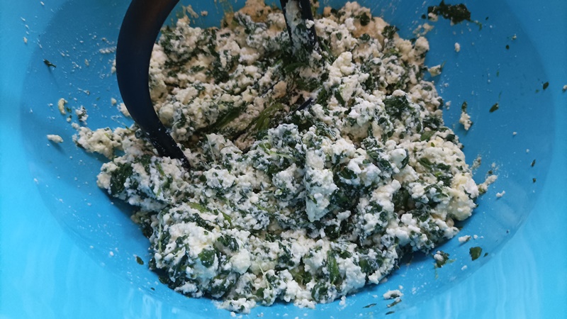 Preparate il ripieno, mettendo in una ciotola, gli spinaci, la ricotta ben asciutta, l’uovo, il parmigiano, la noce moscata, il pepe, ed amalgamate bene;