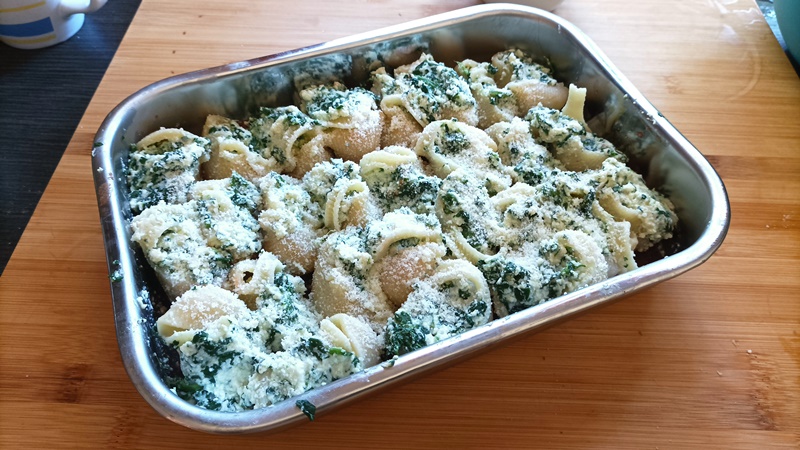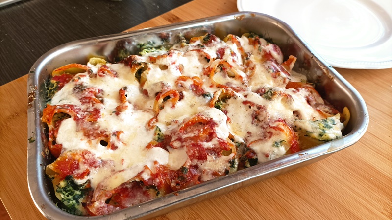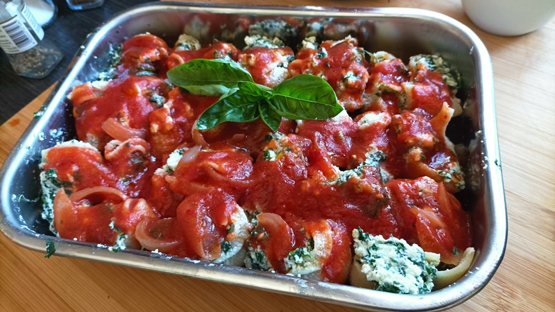 a fine cottura togliete dal forno e servite i conchiglioni di ricotta e spinaci ancora caldi.