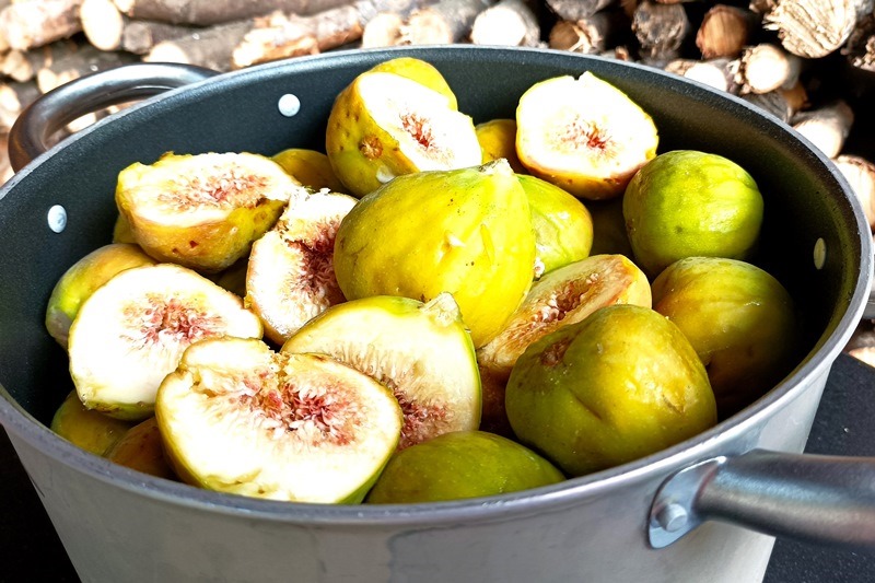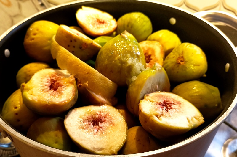 In una pentola fate cuocere a fuoco moderato i fichi con la mela, lo zucchero ed il succo di limone;