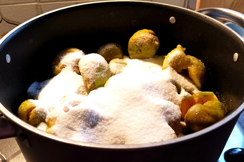 Gli ingredienti principali di questa confettura sono quindi fichi interi con la buccia appena colti, mele, noci, mandorle pelate e zucchero;