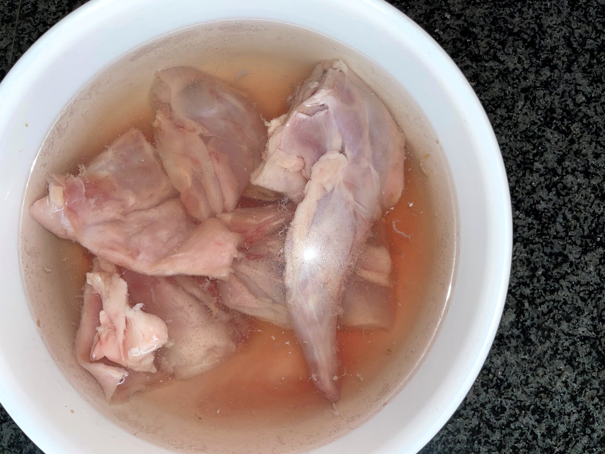 Per preparare il coniglio alla siciliana, iniziate a lavare bene il coniglio con abbondante acqua corrente fredda. Mettetelo in una ciotola, con acqua, aceto e sale grosso, per circa un’ora.