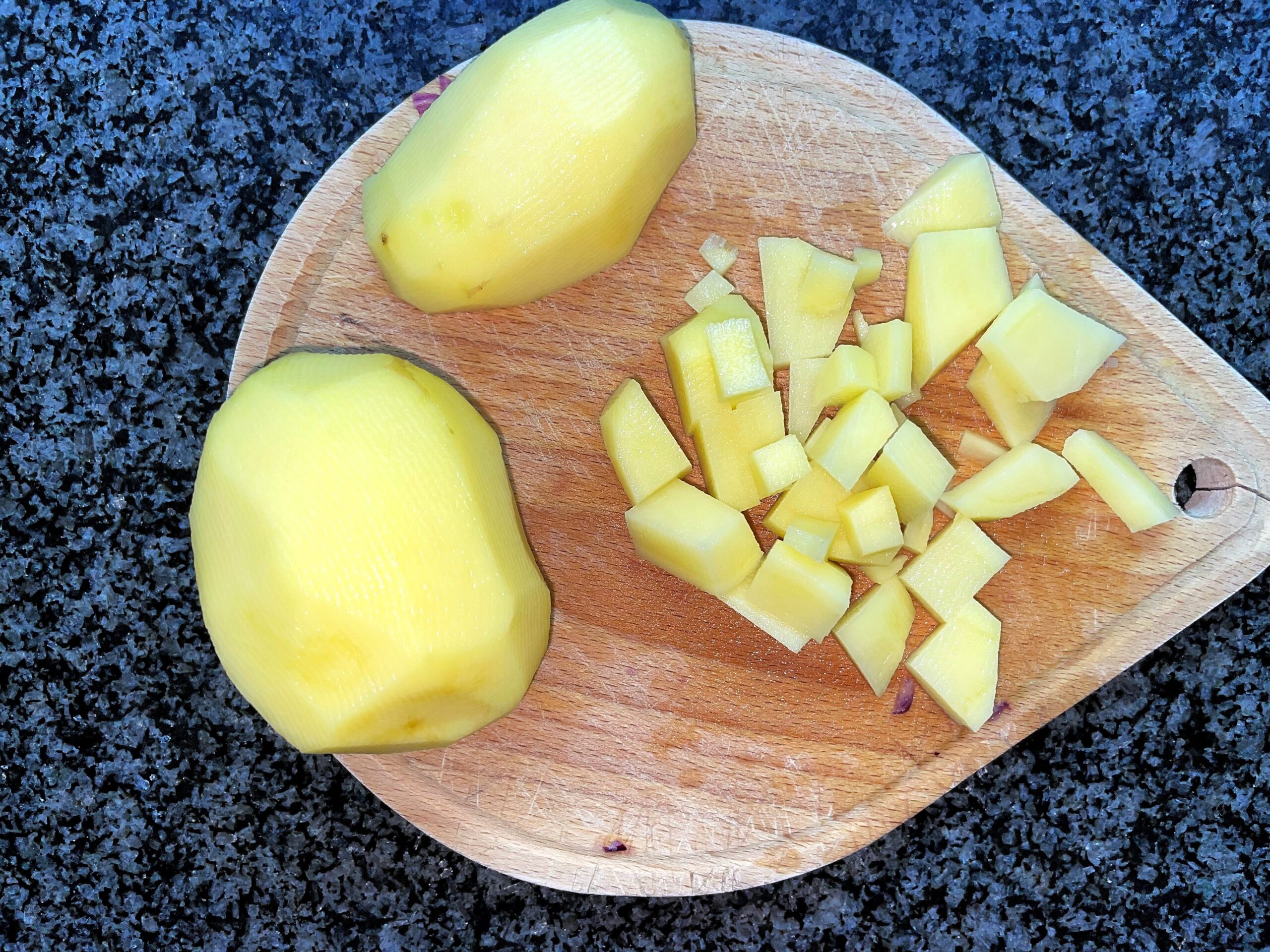 Sbucciate le patate, lavatele e tagliatele a pezzetti.