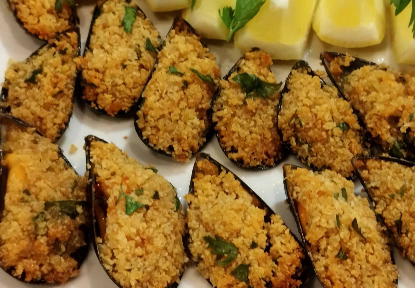 Rimuovete la buccia e schiacciatele in un contenitore. Unite l’olio extravergine di oliva, l’olio all’aglio, il pecorino, sale e pepe. Amalgamate bene e passata il tutto in una sac a poche. Riempite le cozze e adagiatele sulle loro conchiglie. Con un mattarello stendete il pancarrè e tagliatelo a cubetti molto piccoli. Friggetelo nell’olio di semi di girasole ed eliminate l’olio in eccesso con della carta assorbente. Panate così la farcitura delle cozze. Un giro di olio evo e fate gratinare nel grill. Le vostre cozze gratinate sono pronte.