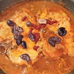 Unite la crema di peperoni, dopo un minuto, il concentrato di pomodori, ed infine le olive denocciolate,