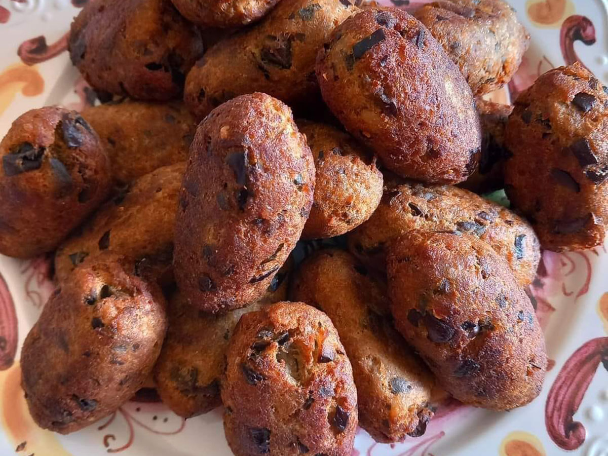 Il gorgonzola, il prezzemolo fresco tritato, i pomodorini, la polpa delle melanzane, un giro di olio extravergine di oliva. Aggiustate di sale e pepe e date una bella mescolata. Con il ripieno ottenuto farcite l’interno delle melanzane che avete precedentemente scavato. In tre ciotole mettete le uova sbattute, la farina e il pangrattato. Passate le melanzane prima nella farina, poi nell’uovo, infine nel pangrattato. Friggetele ancora in abbondante olio per friggere, quindi trasferitele ancora su carta assorbente. Condite con un pizzico di sale e pepe. Le vostre crocchette di melanzane ripiene sono pronte.