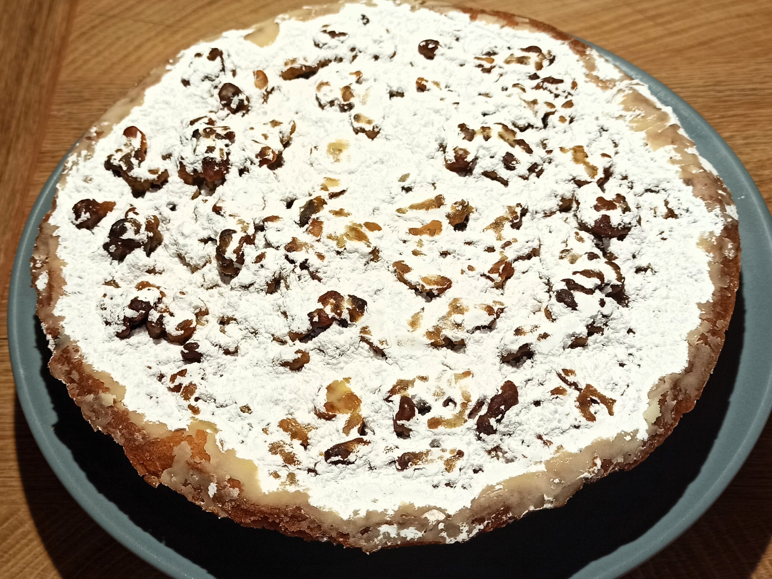 Trascorso il tempo di riposo, con l’aiuto di un mattarello, fate una sfoglia, di circa mezzo centimetro di spessore e foderate una teglia rotonda di 24 cm di diametro. In un pentolino, mettete lo zucchero ed il miele, portate ad ebollizione a fiamma bassa. Aggiungete le noci, tritate grossolanamente, mescolate, e versate il composto sulla pasta frolla, livellatelo con l’aiuto di una spatola. Infornate in forno preriscaldato a 170° per circa venti minuti, sfornate, lasciate raffreddare, prima di servire cospargete la superfice con lo zucchero a velo.