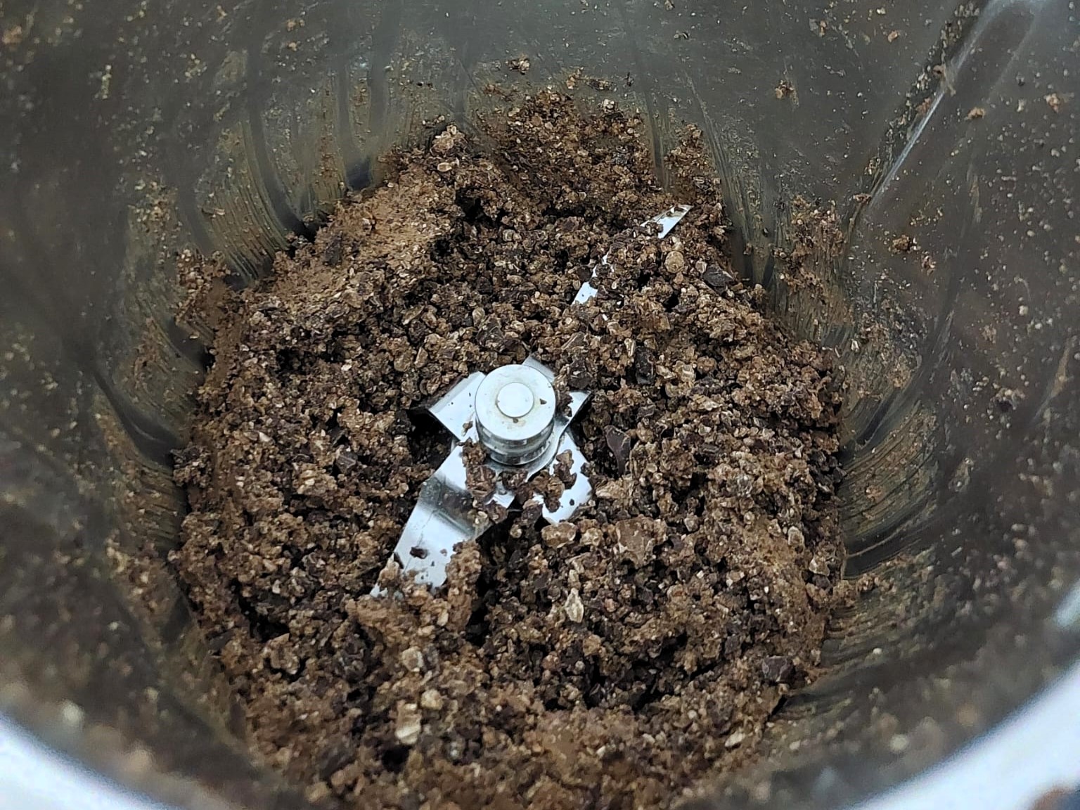 Per preparare la torta di zia Sabry, tagliate a pezzi il cioccolato fomente del vostro Uovo di Pasqua, mettetelo nel boccale, azionate le lame, poi aggiungete il burro, fate amalgamare il tutto e mettete in una ciotolina.