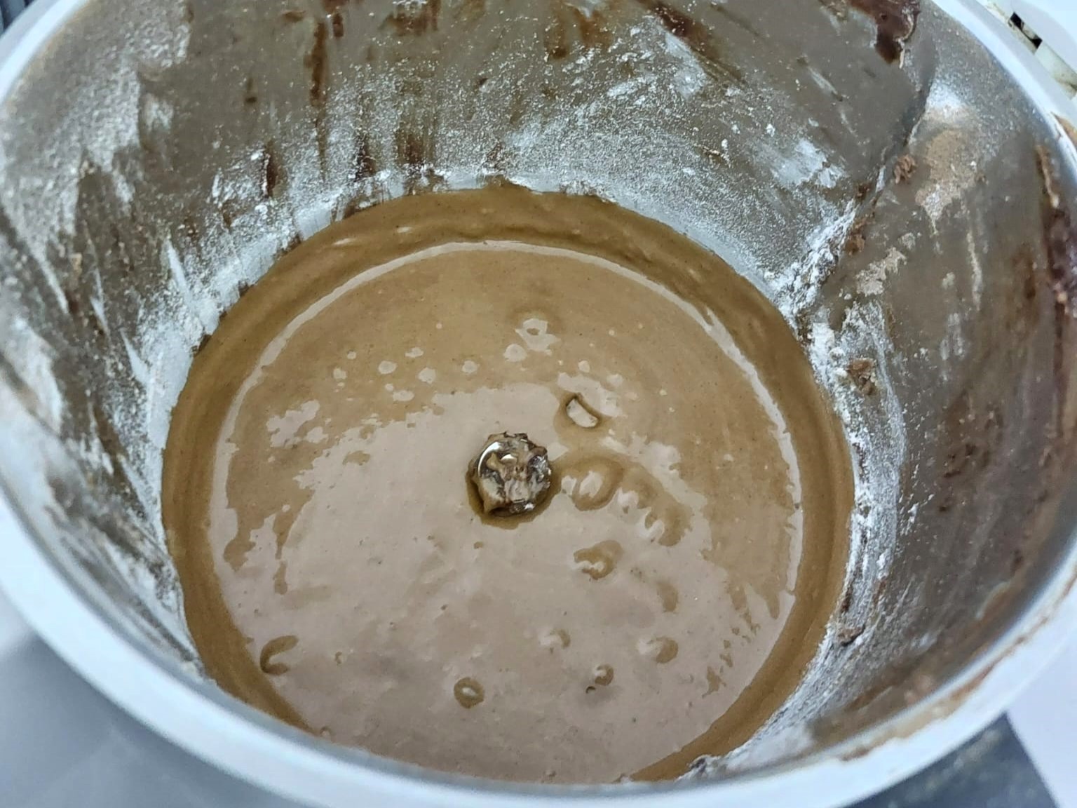 Mettere le uova e lo zucchero, azionate le lame fino ad ottenere un composto spumoso, aggiungete il cioccolato ed il burro. Poi aggiungete la farina setacciata, il lievito ed infine il rum.