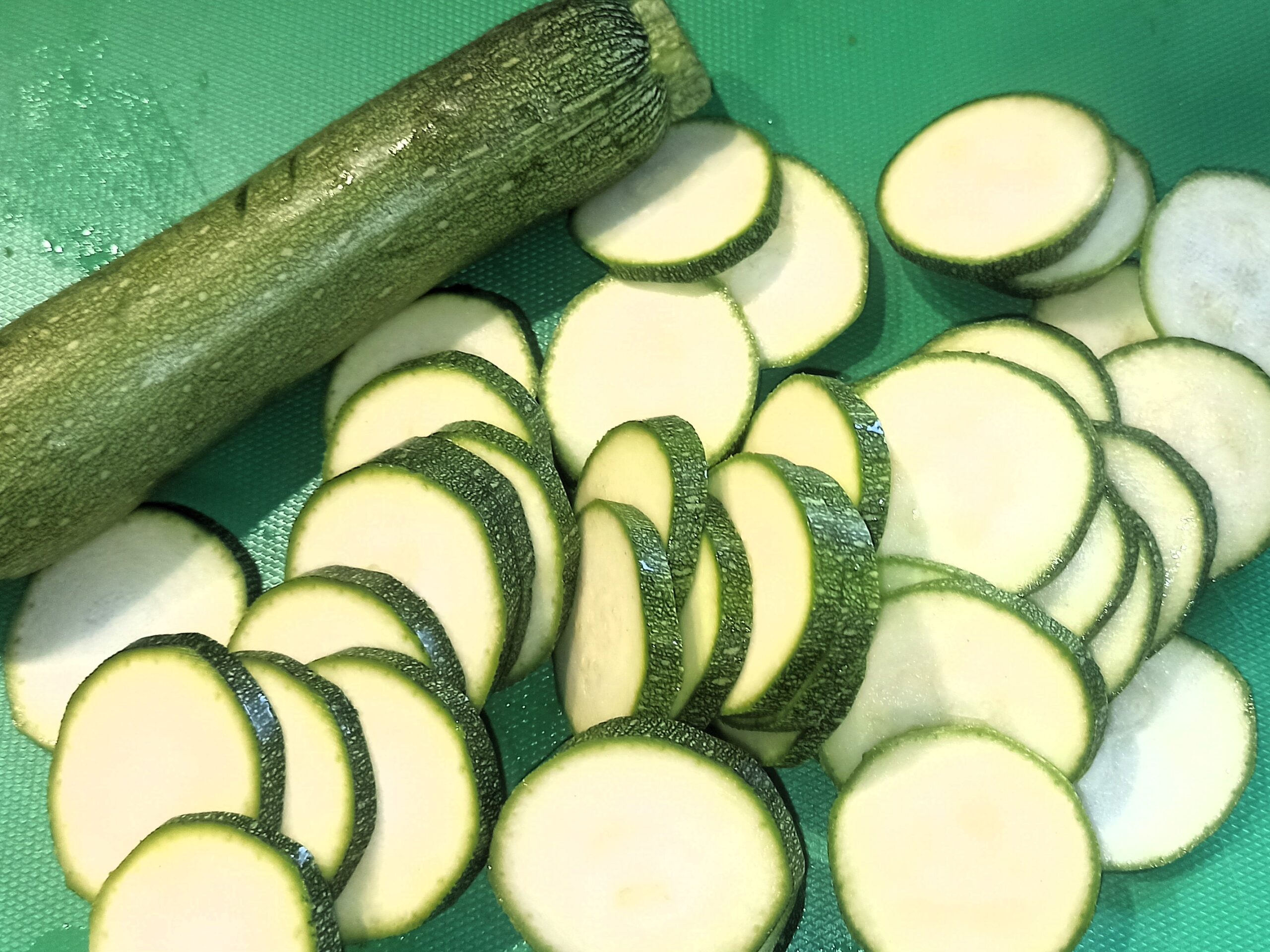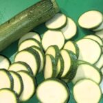 Per preparare i cucuzzielli alla scapece, iniziate a lavare ed asciugare le zucchine. Eliminate le due estremità, e tagliateli a rondelle, dello spessore di circa 3-4 mm.