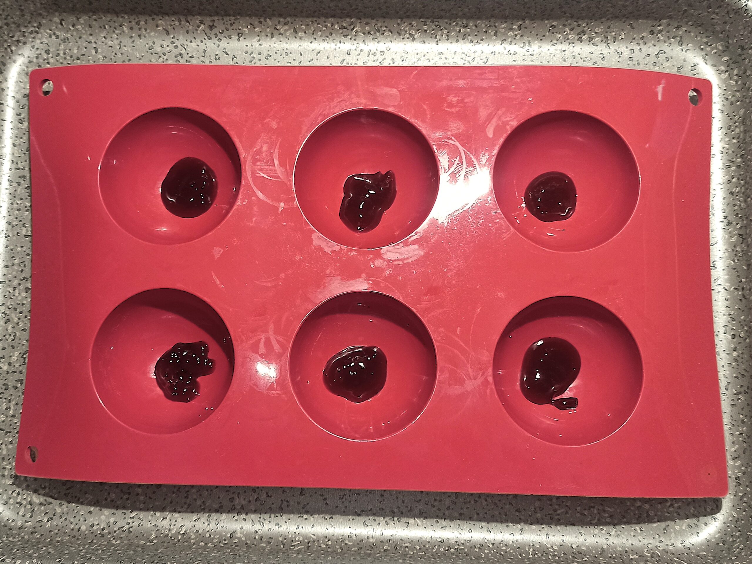 Disponete sul fondo degli stampini un poco di marmellata di amarene,