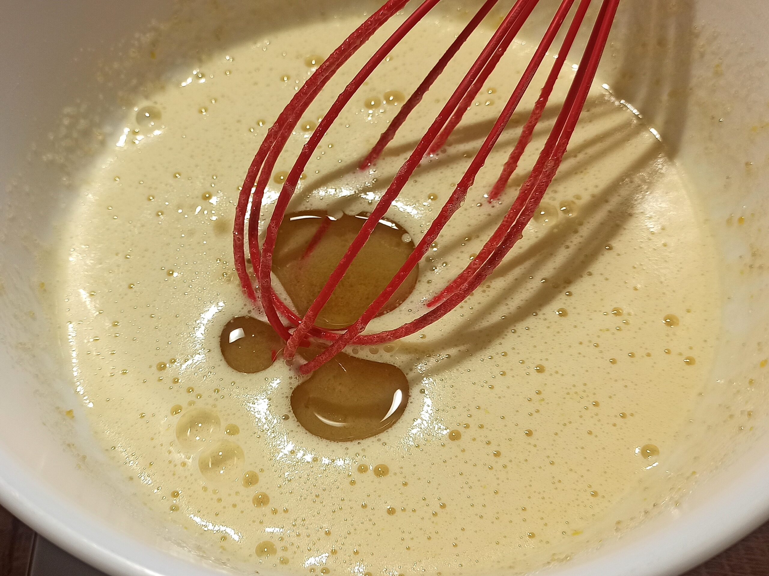 Poi la farina ed il lievito setacciato, mescolate fino ad ottenere un composto liscio ed omogeneo.