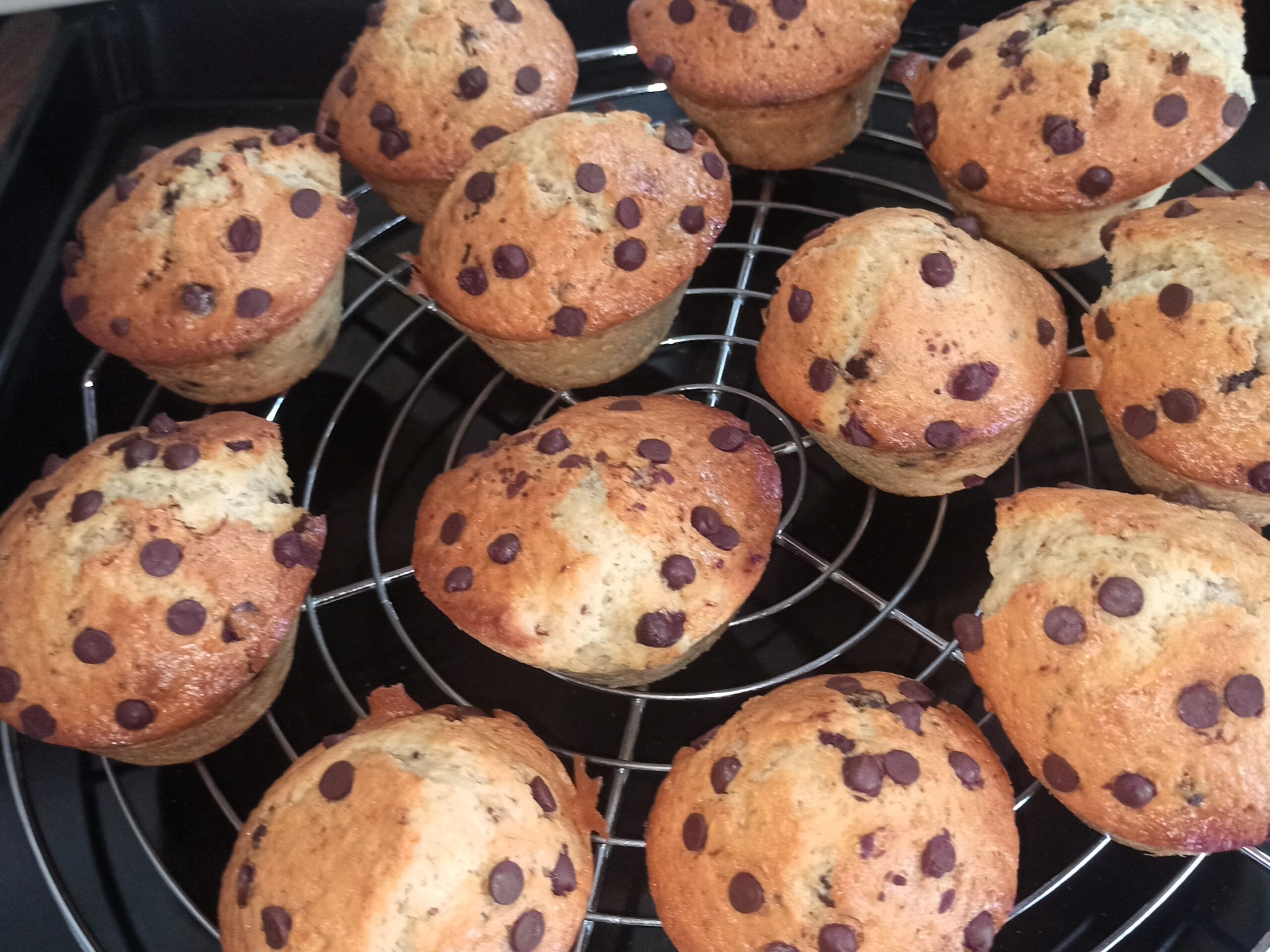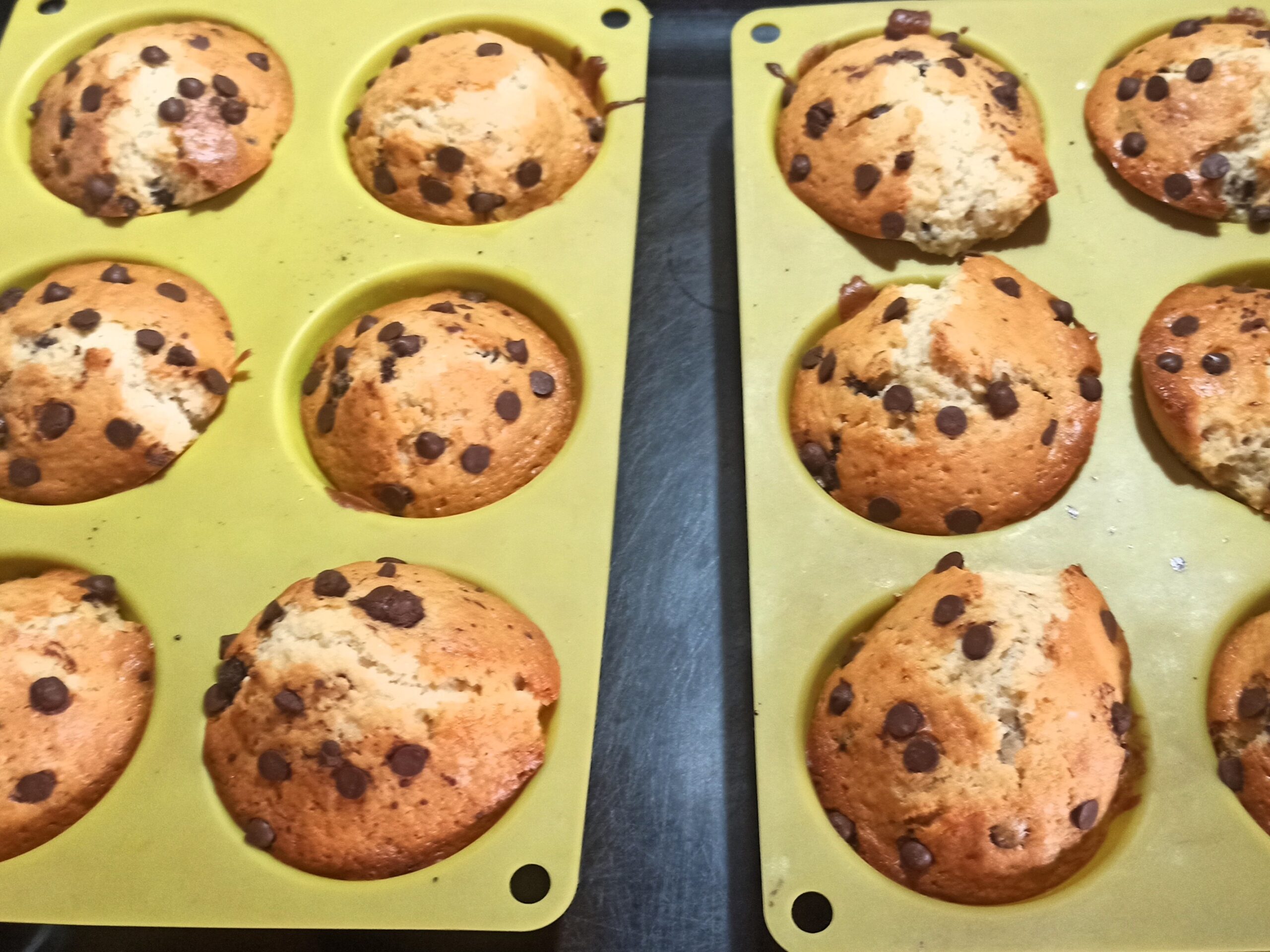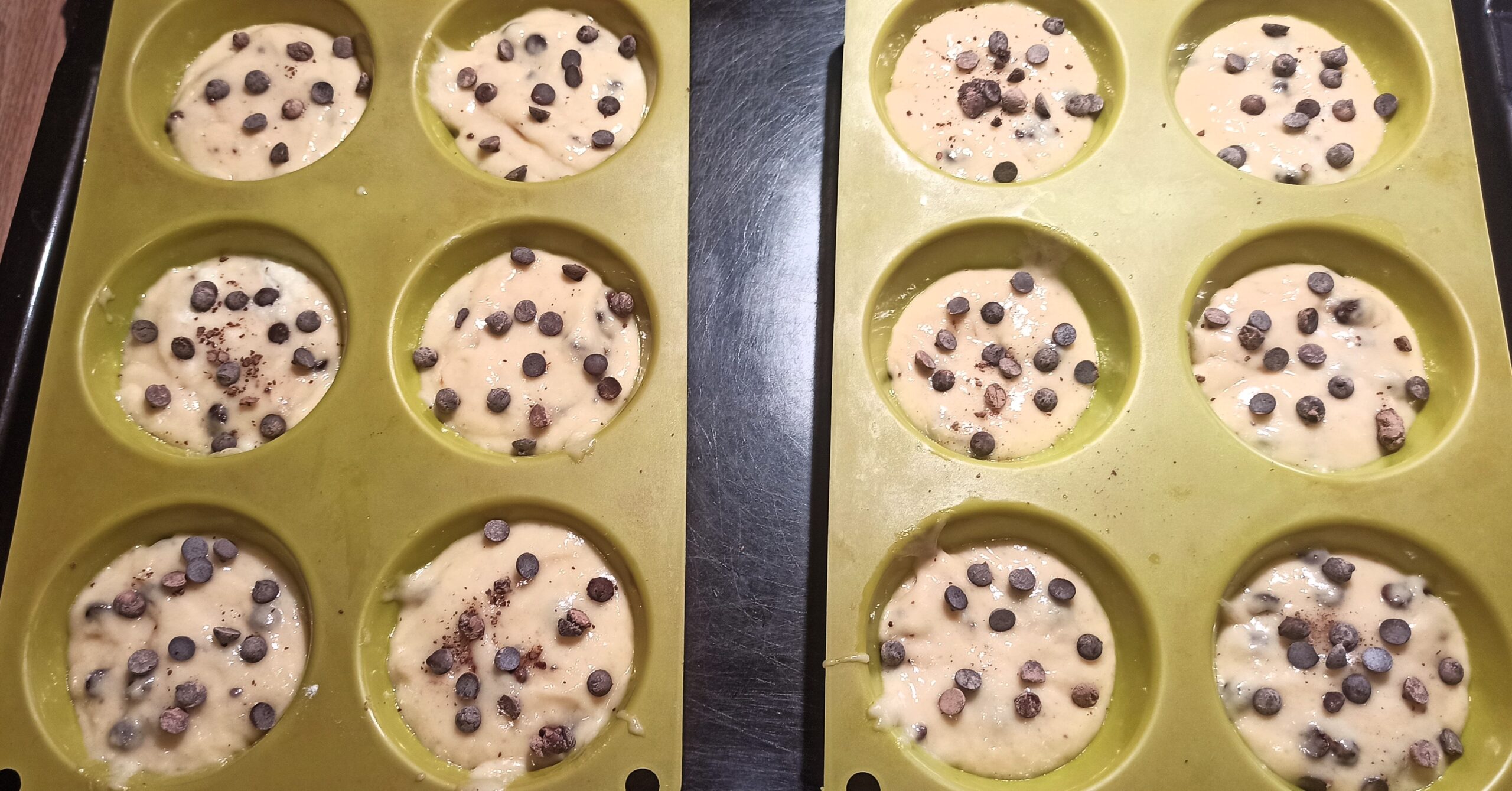 Appena avrete ottenuto un composto omogeneo e privo di grumi, dividetelo nei pirottini e/o stampini dei muffin, completate con altre gocce di cioccolato.