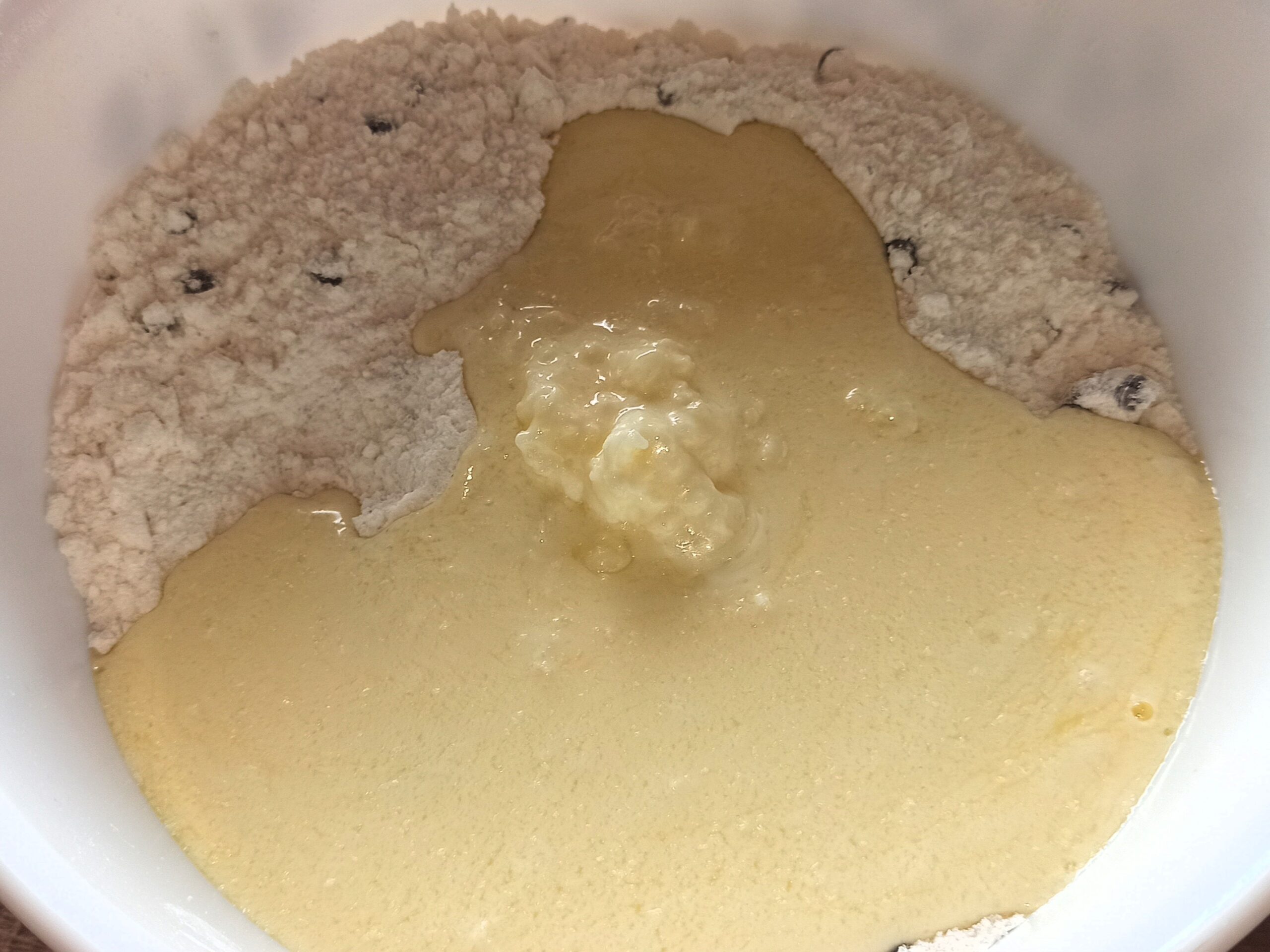 Poi piano piano, aggiungete le polveri, sempre mescolando con una frusta, facendo attenzione a non formare grumi.