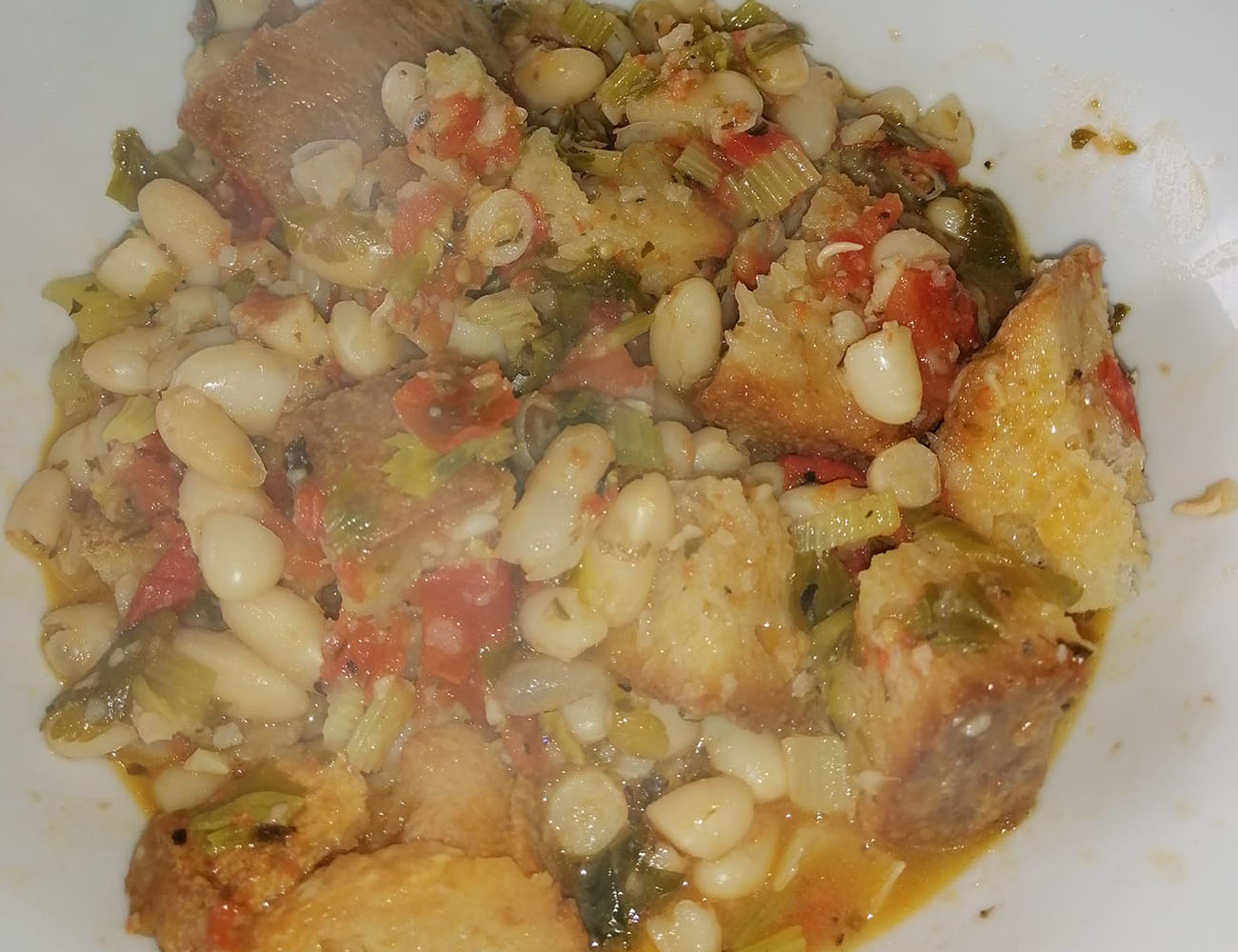 Trascorsi i 20 minuti, rimuovete l’aglio, aggiustate di sale e unite i fagioli preparati in precedenza, insieme a un po’ della loro acqua di cottura per ottenere la consistenza desiderata. Lasciate cuocere a fuoco lento per altri 10-15 minuti. Nel frattempo, tostate il pane in forno, tagliandolo a pezzi grossolani. Poco prima di terminare la cottura, aggiungete qualche foglia di basilico spezzettata a mano e una generosa spolverata di origano secco. Prima di servire, regolate di sale se necessario, e completate il piatto aggiungendo in ogni porzione qualche foglia di basilico fresco, il pane tostato e un filo di olio a crudo. I fagioli alla maruzzara sono pronti per essere gustati. Buon appetito!