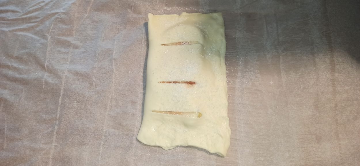 e richiudetela su se stessa. La parte con le incisione, dovrà essere quella rivolta verso l’alto, terminate con lo zucchero.