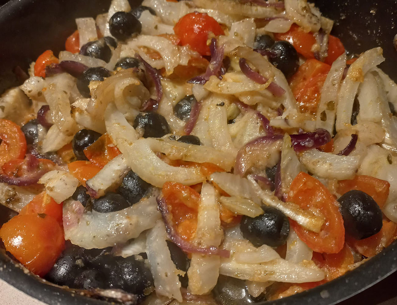Iniziate Tagliando i finocchi a spicchi e poi disponeteli in una teglia foderata con carta forno. Affettate la cipolla a mezzaluna e aggiungetela nella teglia. Tagliate i pomodorini a metà e uniteli agli altri ingredienti. Aggiungete anche le olive nella teglia. Per la gratinatura, cospargete con formaggio grattugiato e pangrattato. Condite il tutto con sale, pepe, un filo d’olio e del prezzemolo tritato.