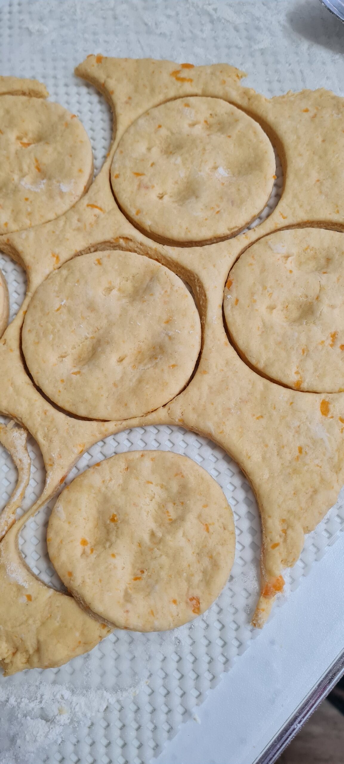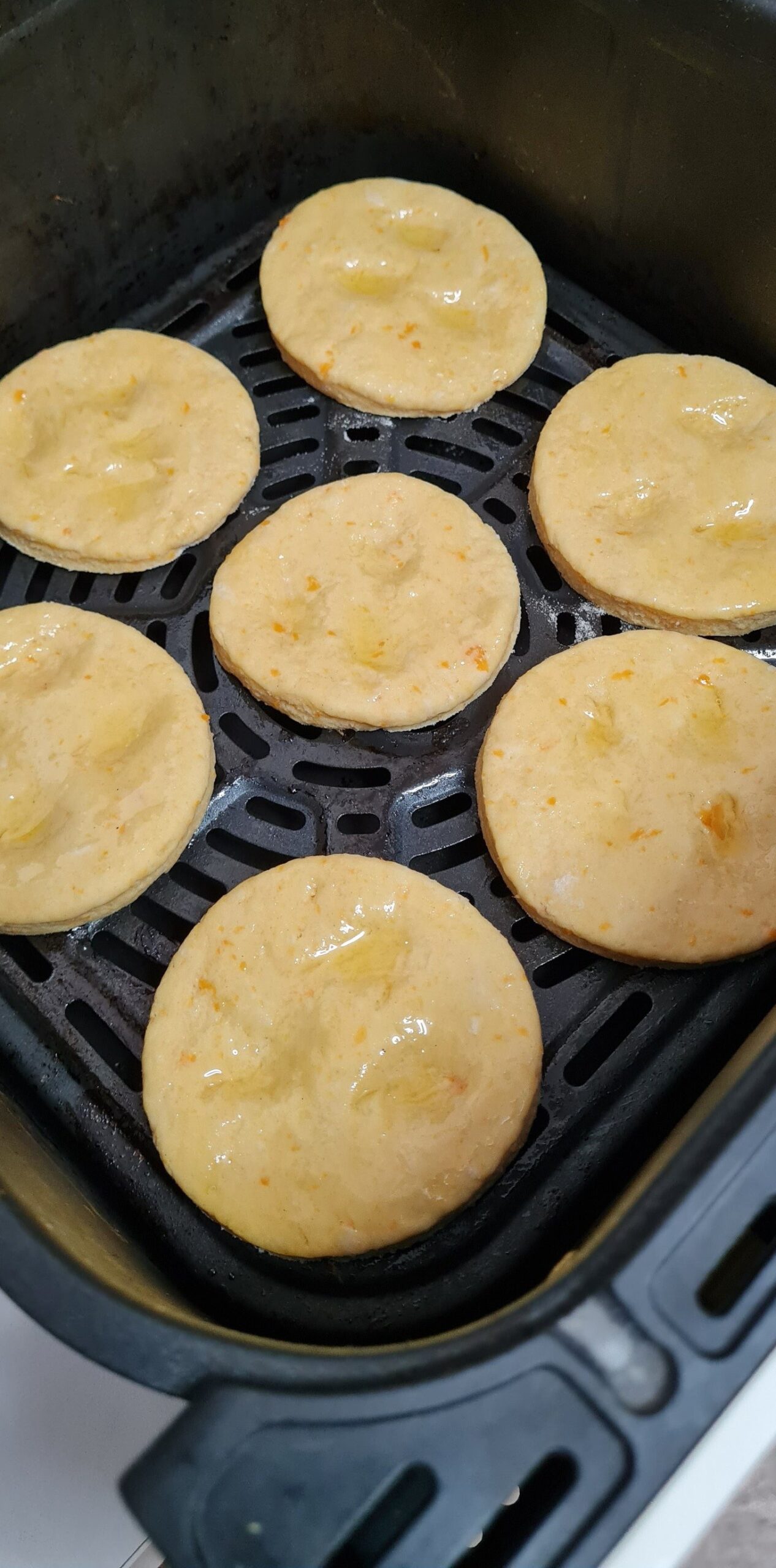 Inizia lavorando bene tutti gli ingredienti fino a ottenere un panetto compatto e liscio. Lascia riposare l’impasto per circa dieci minuti, poi stendilo con il mattarello su una superficie leggermente infarinata. Con uno stampino ricava tante piccole focaccine rotonde. Disponile sulla griglia del forno leggermente unta, spennellale con un filo d’olio e cuoci a 175°C per 11-13 minuti. Il risultato sarà delle focaccine dorate, soffici dentro e fragranti fuori.