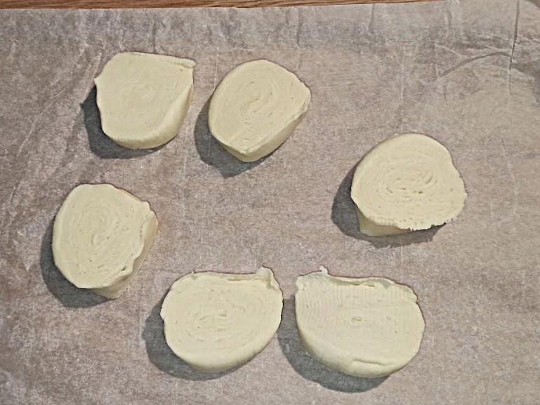 Trascorso questo tempo, dividete il rotolino in sei fette uguali.